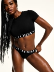 Бавовняні трусики тонг будуть непомітні навіть під тонким одягом. Милі, красиві та дуже сексуальні. Ваша улюблена модель трусиків стає трохи блискучою завдяки нашій сліпучій нашивці з логотипом на поясі.