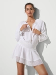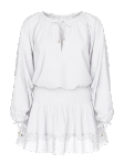 Характеристики: • Суміш бавовни та льону • Декоративний виріз «краплинка» спереду • Зборка (смокінг) на талії • Зав’язка на горловині спереду • Зав’язки на рукавах • Легко одягається через голову • Квіткове мереживо • Декоративні вирізи • Ручне прання • Імпорт